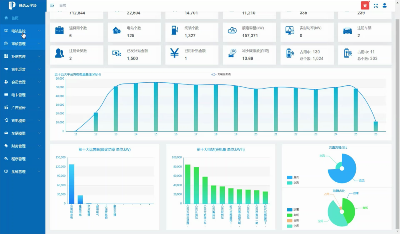 新能源充電設(shè)施監(jiān)管服務(wù)系統(tǒng)具備運(yùn)營商審批備案、個(gè)人及企業(yè)購車補(bǔ)貼、企業(yè)評級、電站驗(yàn)收等功能,實(shí)現(xiàn)對全市充電站數(shù)據(jù)的匯總監(jiān)管,補(bǔ)貼下發(fā)、掃碼充電、補(bǔ)貼使用、余額查詢等。